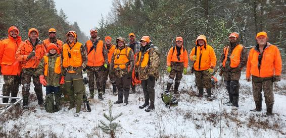 Some of the members of The Red Brush Gang taking a break between deer drives.